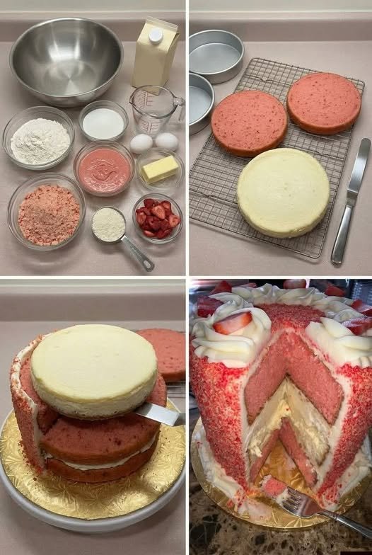 - Bake in 2 round pans at 180°C for 25–30 minutes