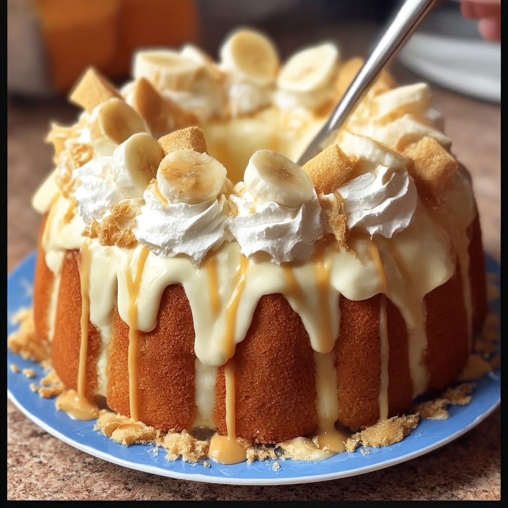 This Banana Pudding Pound Cake transforms the beloved Southern dessert into an elegant cake format by incorporating mashed bananas into a dense pound cake base, then topping it with banana pudding and traditional garnishes. The recipe creates a substantial cake that captures the essence of banana pudding through both the cake itself and the pudding topping, finished with whipped cream, vanilla wafers, and fresh banana slices.
