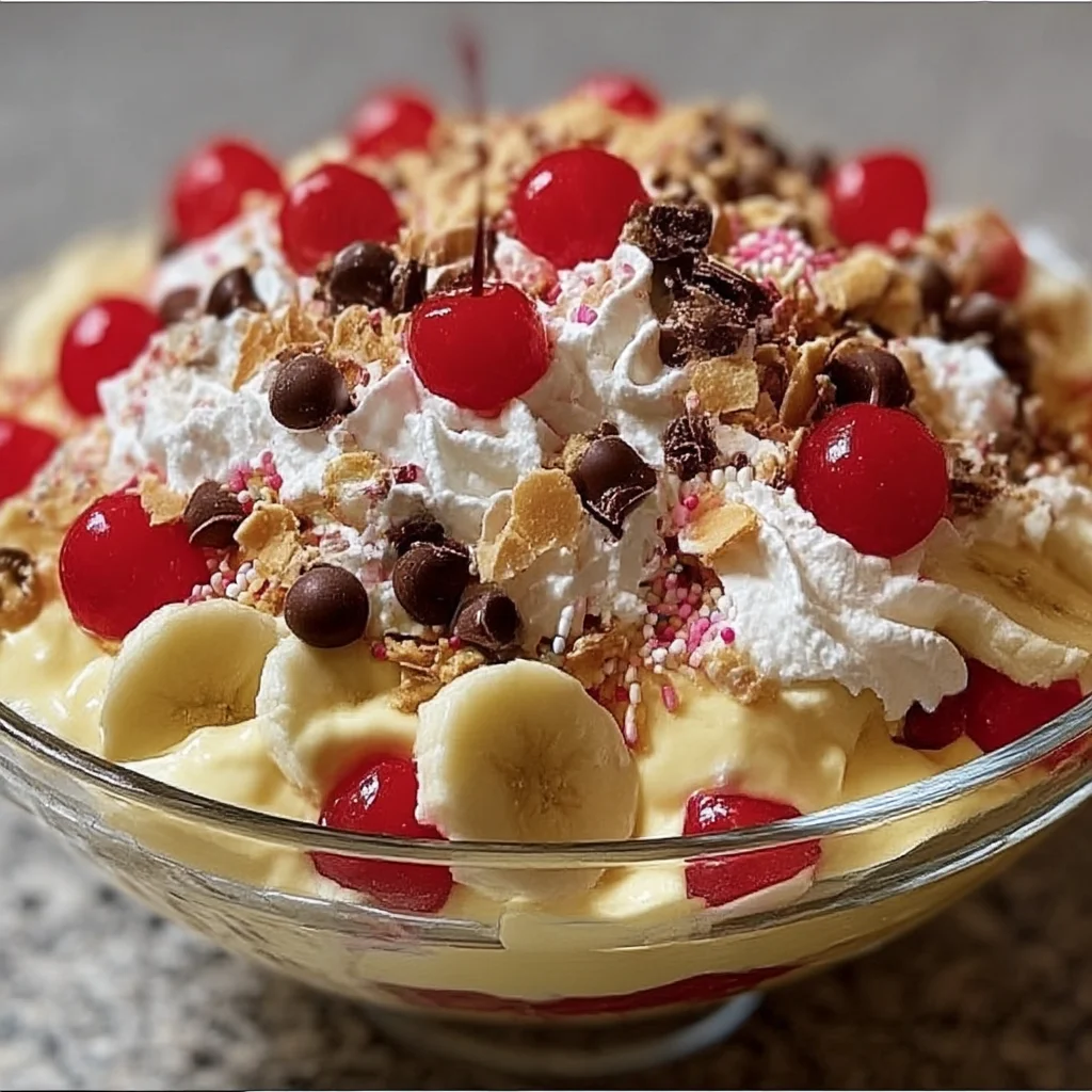 Is there anything more nostalgic than a banana split on a warm summer afternoon? Imagine the rich taste of bananas, sweet strawberries, whipped cream, cherries on top, and of course—sprinkles. Now picture all of those beloved flavors transformed into a light, creamy, and dreamy no-bake dessert. That’s Banana Split Fluff—the ultimate crowd-pleasing treat that blends fun, flavor, and flair in one big bowl of joy.