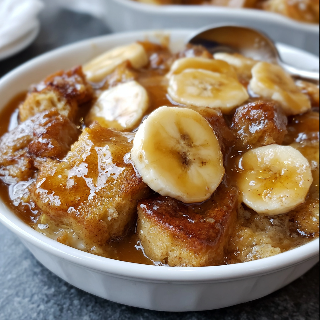This dessert succeeds because it combines the familiar comfort of bread pudding with the sophisticated flavors of bananas foster while maintaining practical preparation methods. The custard base provides richness and structure, while the sauce delivers the caramelized banana flavors that make bananas foster distinctive.