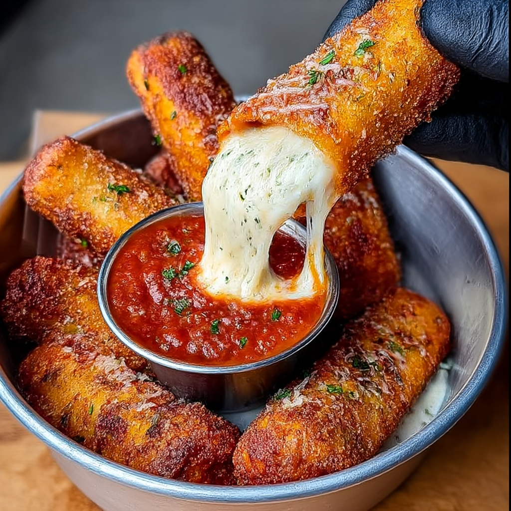 These crispy, golden fried mozzarella sticks deliver everything you want from the perfect appetizer—a satisfying
