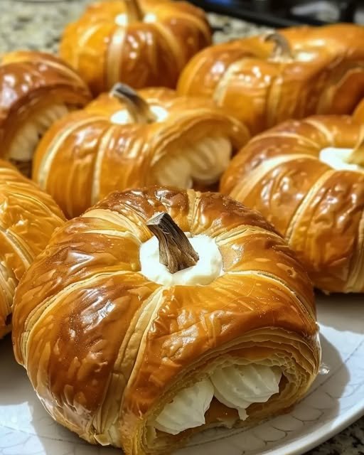 These Crescent Pumpkins create adorable fall-themed pastries by combining cream cheese and spiced pumpkin filling