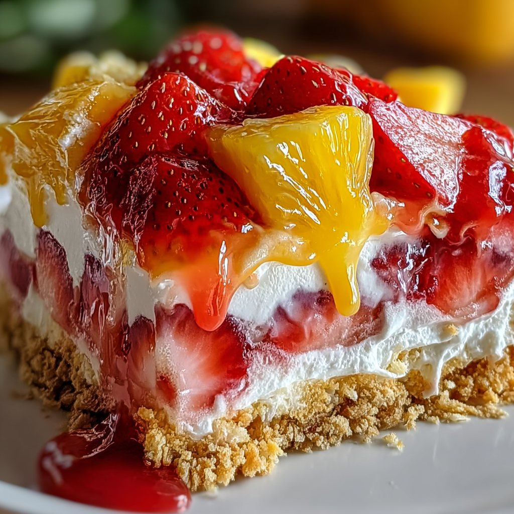 This no-bake strawberry split cake layers tropical flavors in a convenient format that requires no
