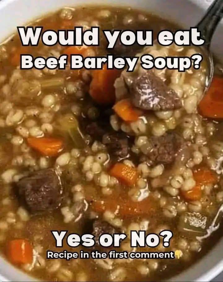 🥩🥣 Beef Barley Soup A hearty and comforting soup full of tender beef, vegetables, and