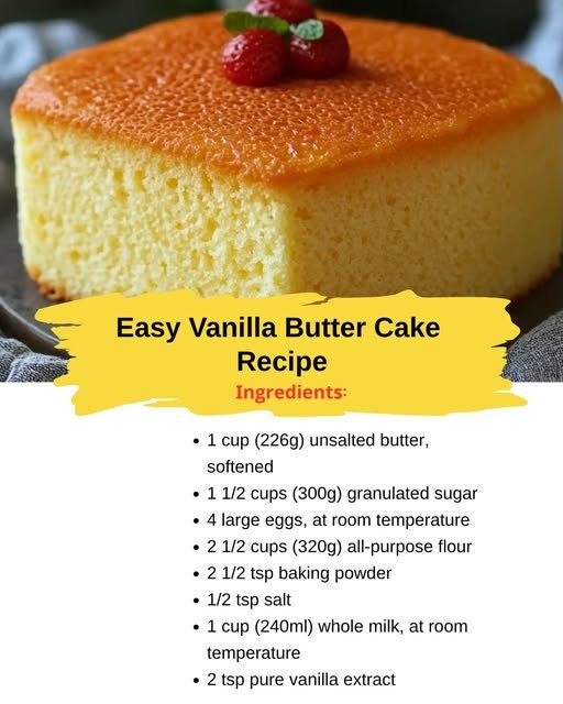 Soft β’ Moist β’ Classic Flavor Light, fluffy, and rich with buttery goodness π This is the perfect everyday cake! Donβt lose this recipe! π Ingredients π©βπ³ Instructions 1. Preheat oven180Β°C (350Β°F). Grease and line a cake pan. 2. Cream butter & sugarBeat butter and sugar until light and fluffy.