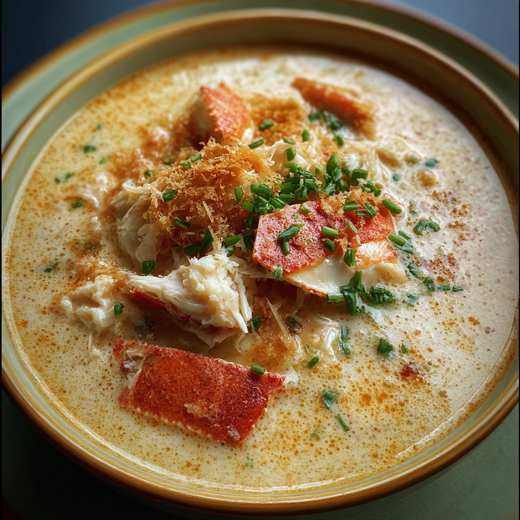 This She-Crab Soup with Turkey and Seafood combines crab meat with turkey bacon and diced