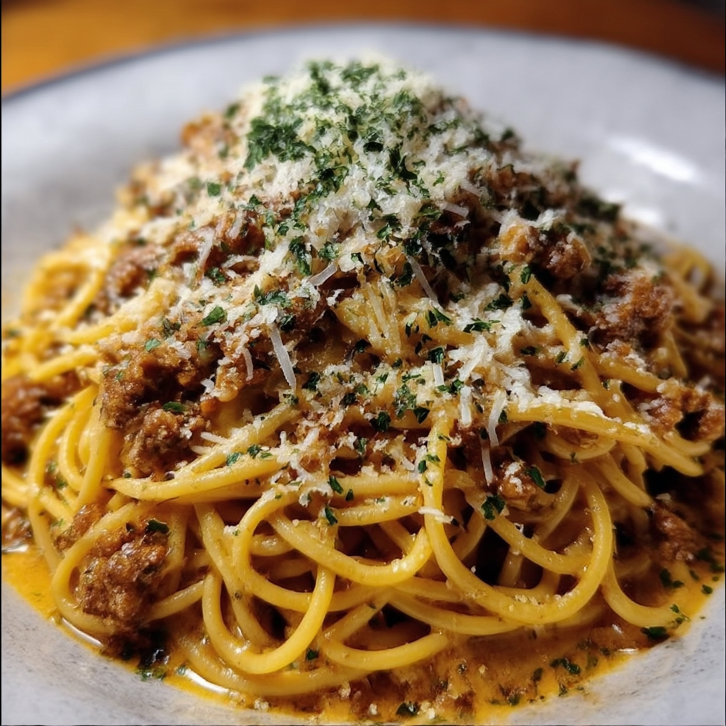 This Garlic Butter Parmesan Spaghetti with Savory Beef combines seasoned ground beef with a rich garlic butter sauce and Parmesan cheese for a satisfying pasta dish that delivers restaurant-quality flavors at home. The recipe builds layers of flavor through proper seasoning of the beef and creating a silky sauce that coats each strand of spaghetti. The combination of garlic, butter, and Parmesan creates a classic Italian-inspired sauce while the seasoned beef adds protein and substance.