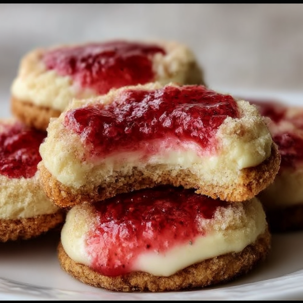 These Strawberry Cheesecake Cookies combine classic sugar cookie dough with cream cheese filling and fresh strawberry topping for a dessert that merges cookie and cheesecake elements. The recipe creates cookies with three distinct components: a soft cookie base, creamy cheesecake center, and sweet strawberry garnish. The technique involves preparing each